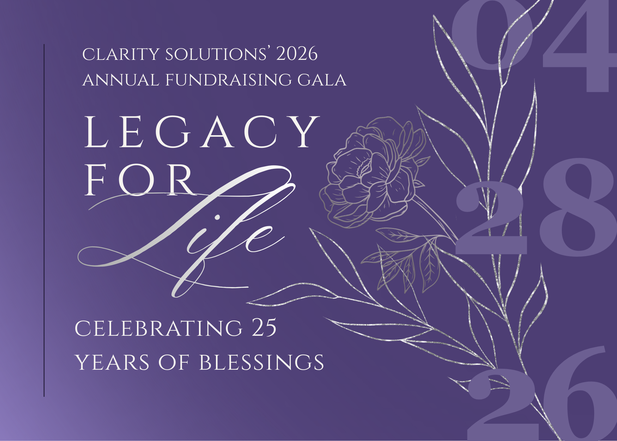 You are invited to Clarity’s annual fundraising Gala at Severns Valley Baptist Church on Tuesday, April 28 at 6pm. Join us for a night of laughter and celebration featuring speaker and comedian Mike Williams. Enjoy worship, fellowship, and food as we celebrate 25 Years of Blessings together.